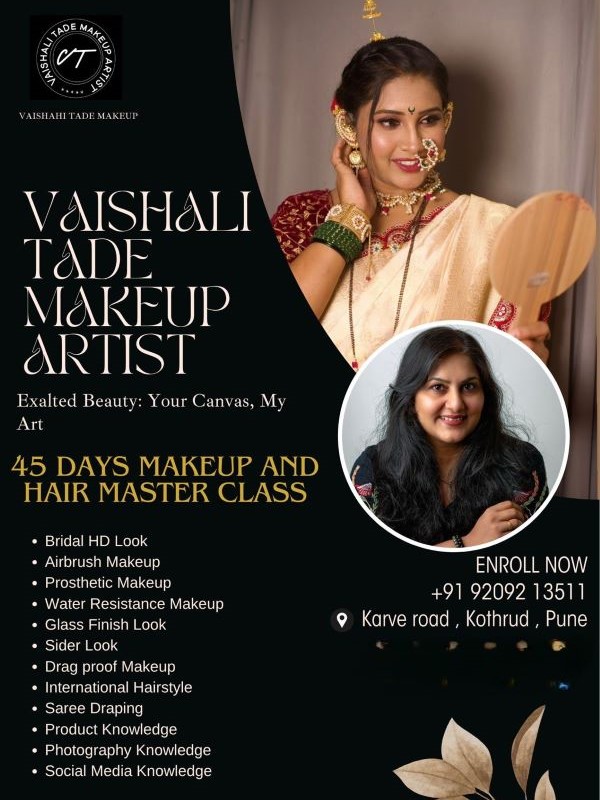 Vaishali Tade is Pune(India) base Makeup Artist. She is having 17+ yrs of experience in Professional Makeup, Hair Style. She now also provide training for upcoming makeup artist. She is expert in Bridal and Model makeup. She had done make up of many celebrities including Models, Singers, Actress, International Actress as well as International Models.